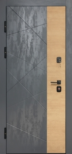 Входная дверь для квартиры с комбинированными плитами МДФ (имитация бетона и дерева) КД-1302