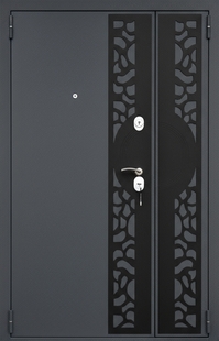 Полуторная входная дверь с лазерной резкой и темно-серым полимерным покрытием разрабатывалась с акцентом на долговечность, функциональность и внешний вид. Благодаря сочетанию эстетики и функциональности дверь подходит для использования в жилых и коммерческих пространствах.